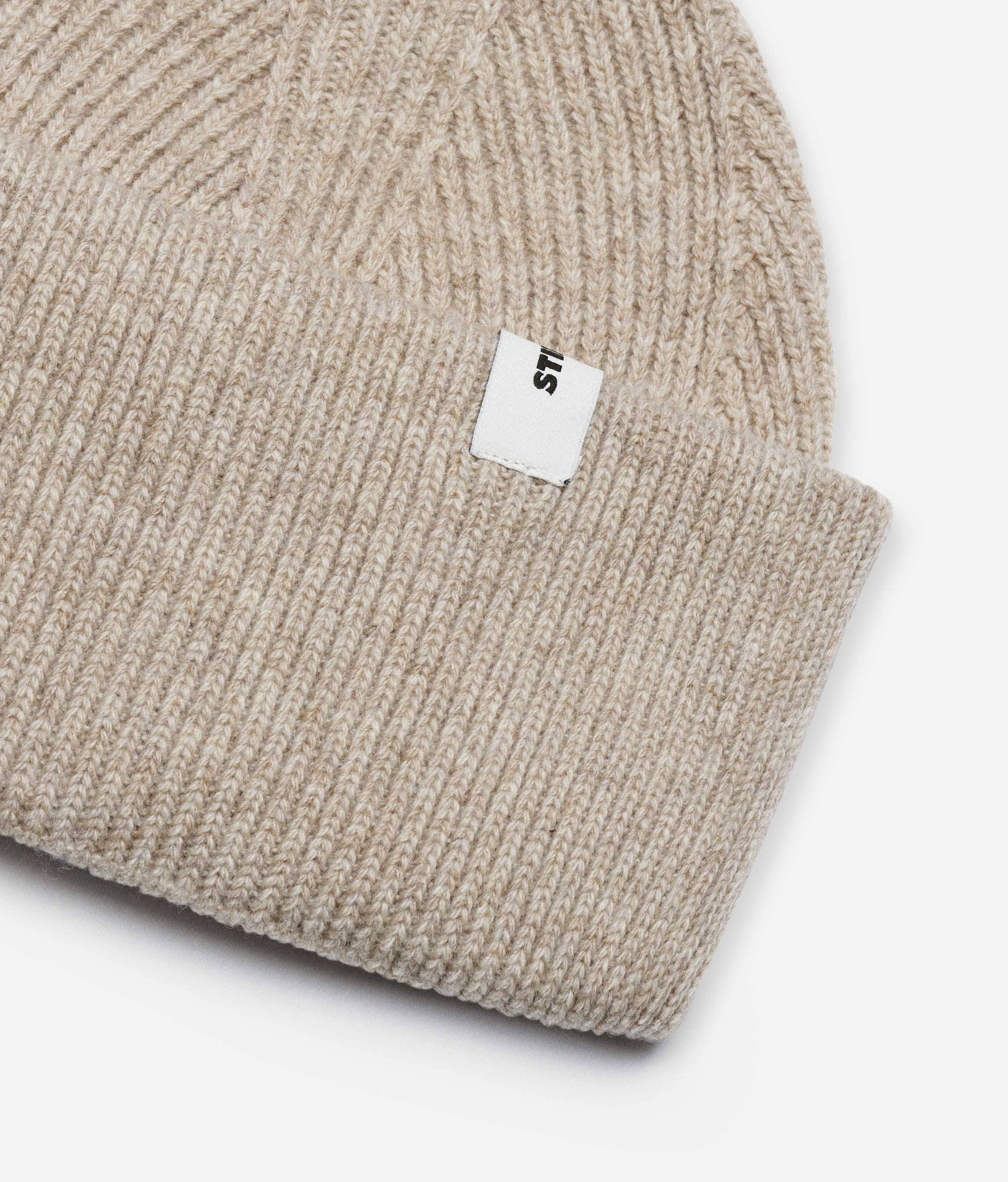 Stiksen Beanie 01 Merino Sand is an oversized chunky fit premium beanie made from 100% merino wool, spun in Italy. This rib-knitted, double-cuff design ensures warmth and comfort.